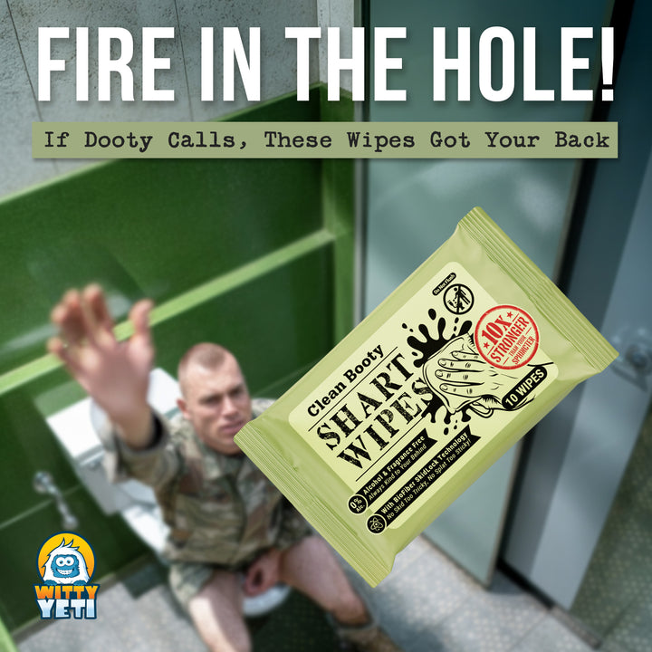 - CLEAN UP YOUR BOWELS' DISHONORABLE DISCHARGE. Our tactical reinforcement pack has you covered with a resealable pack of No-BS Butt Wipes.